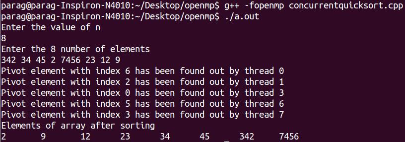 >>>g++ -fopenmp concurrentquicksort.cpp