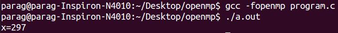 Lets see a simple C language program (program.c) which uses OpenMP API. Here we will create 300 threads and each thread will try to increment the value of x.