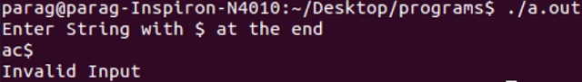 printf("Enter String with $ at the end\n");