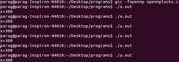 Lets see a simple C language program (program.c) which uses OpenMP API. Here we will create 300 threads and each thread will try to increment the value of x.