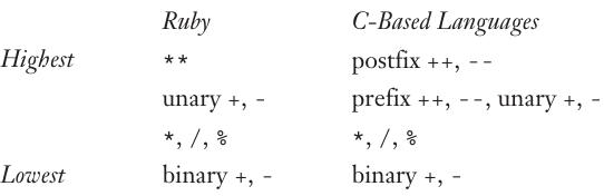 The precedences of the arithmetic operators of Ruby and